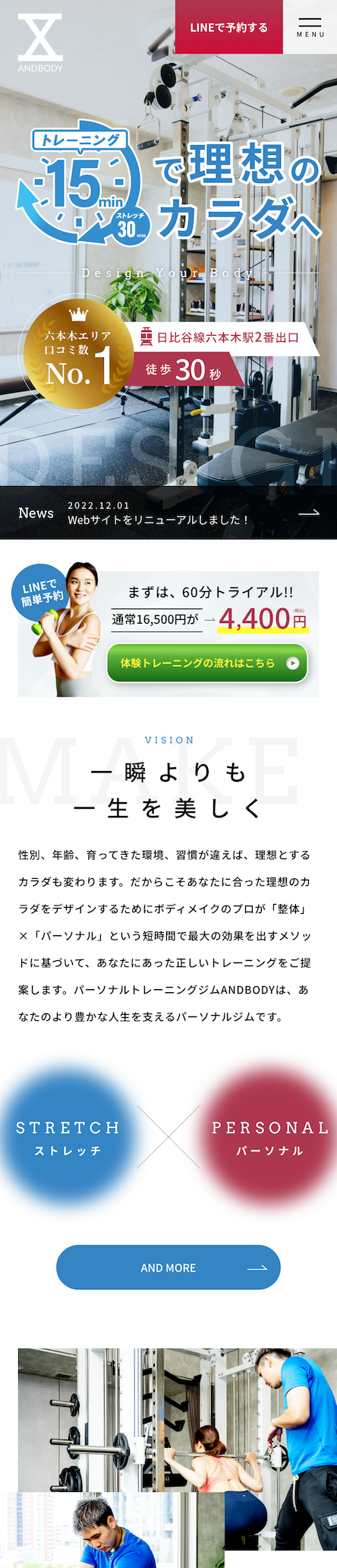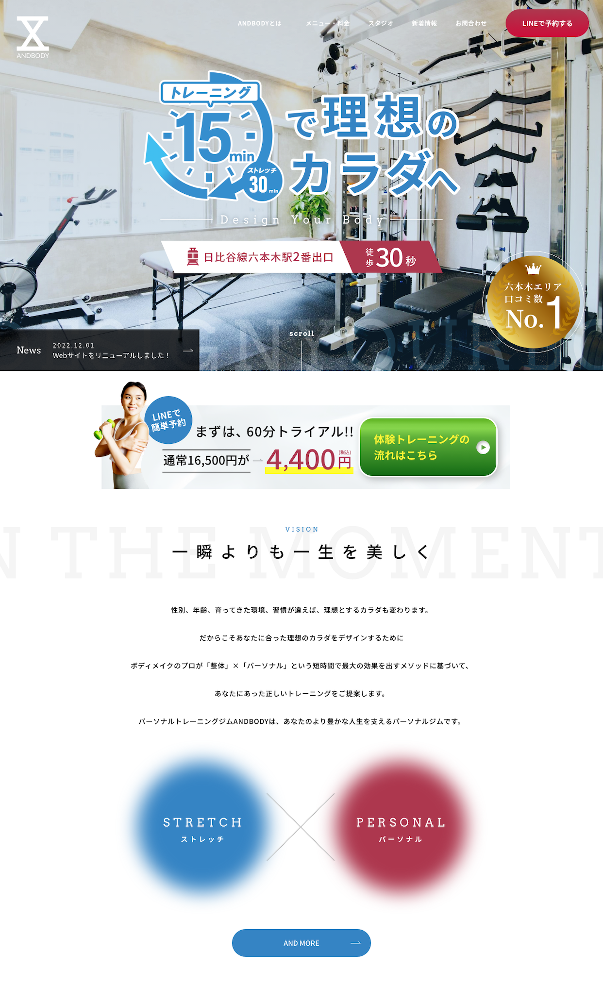 東京都を拠点に、パーソナルトレーニング事業を行うANDBODY様のコーポレートサイトをリニューアルしました。